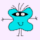 Han älskar leksaker med rep på. Så han kan ta repet i munnen och sen dansar han runt, runt med den och två gånger per varv, dunkar han ner leksaken i backen 🙂
